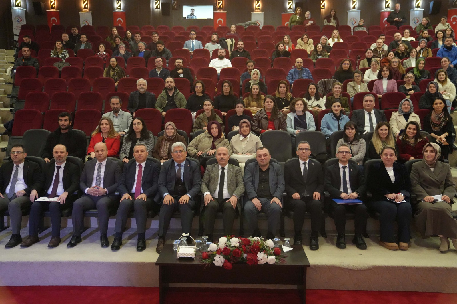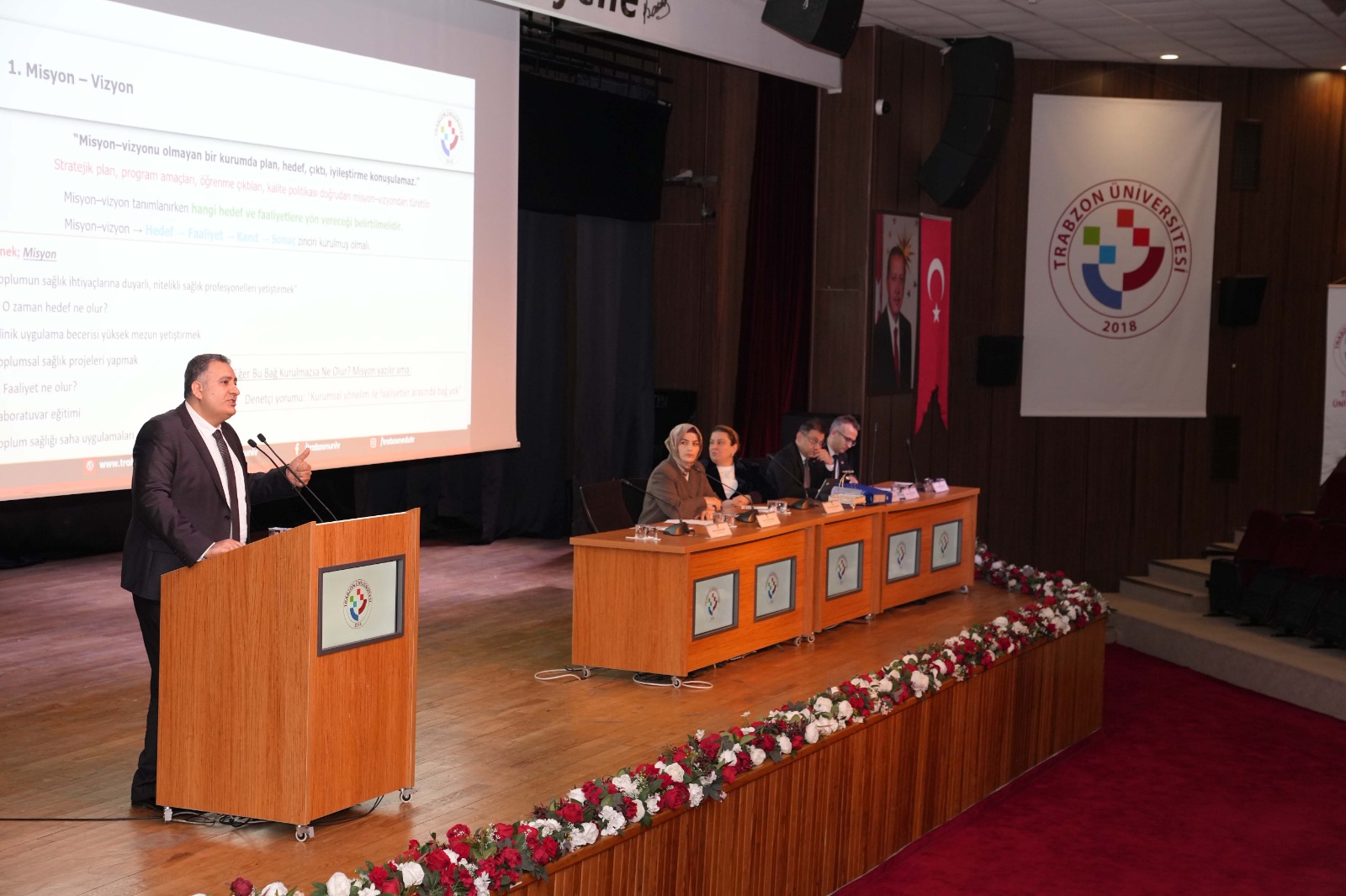 Programda, Beşikdüzü Meslek Yüksekokulu Müdürümüz Dr. Öğr. Üyesi Ertuğrul Karoğlu, Çarşıbaşı Meslek Yüksekokulu Müdürümüz Dr. Öğr. Üyesi Lokman Şılbır ve Tonya Meslek Yüksekokulu Müdürümüz Dr. Öğr. Üyesi Galip Usta’nın yanı sıra İlahiyat Fakültesi Dekan Yardımcımız Doç. Dr. Semra Çinemre, Kalite Koordinatörümüz Doç. Dr. Selcen Sarı Aytekin moderatörlüğünde kalite süreçlerine ilişkin görüşlerini sıraladı. Aytekin, “Birbirinden beslenen, birbirini destekleyen ve ortak akıl oluşturmayı hedefleyen bir eğitim programı planladık. Sunulacak görüşler bu yolda yürüyen meslektaşlarımıza ışık olacaktır” diyerek sözü sunuculara bırakırken, yönetici öğretim üyelerimiz de kalite süreçlerine ilişkin deneyim ve tavsiyelerini katılımcılarla paylaştı.