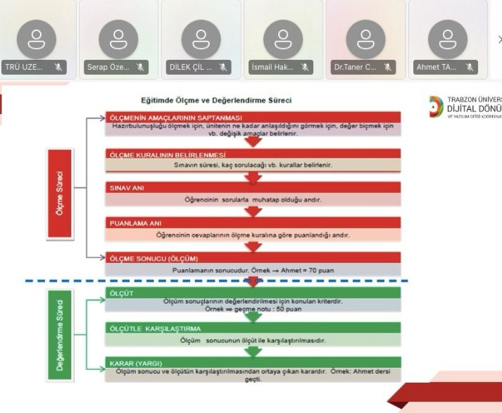 Üniversitemiz bünyesinde görev yapan akademik personelin mesleki gelişimlerine katkı sağlamayı amaçlayan ve alanında uzman hocalar tarafından verilen dersler kapsamında ilk aşamada seri çevrim içi oturumlar düzenlendi, ardından Ölçme ve Değerlendirme dersi özelinde yüz yüze atölye çalışmaları tatbik edildi.