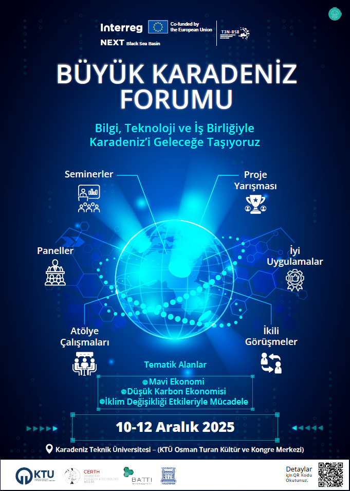 Karadeniz Teknik Üniversitesi ev sahipliğinde, 10–12 Aralık 2025 tarihleri arasında Prof. Dr. Osman Turan Kongre ve Kültür Merkezi'nde Büyük Karadeniz Forumu (Grand Black Sea Forum) düzenlenecektir.