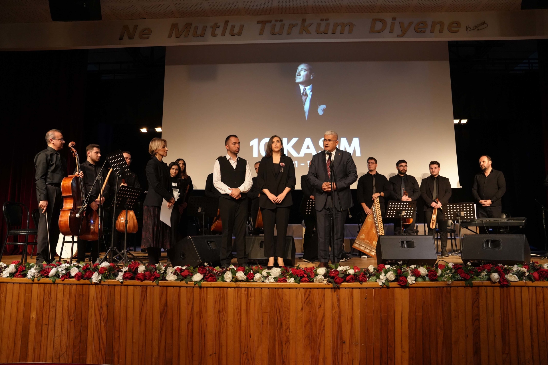 Eser icraları öncesi Devlet Konservatuvarı öğrencilerinin sunumlarıyla renklenen konser öncesi bir konuşma yapan Devlet Konservatuvarı Yüksekokul Müdürümüz Doç. Dr. Burcu Kalkanoğlu, her 10 Kasım’ın yalnızca bir yas günü olmadığını, Atatürk’ün emanet ettiği değerleri yeniden hatırlama ve onun düşüncelerini, ideallerini yaşatma kararlılığını tazeleme günü olduğunu ifade etti. Atatürk’ün askerî bir deha ve devleti adamı olmasının yanında bir uygarlık öncüsü ve kültür bilincinin mimarı olduğunu belirten Kalkanoğlu, “O, sanatın bir milletin ruhunu besleyen en güçlü kaynak olduğuna inanmış, bu inancını hem sözleriyle hem de eylemleriyle ortaya koymuştur. Cumhuriyetimizin kuruluşuyla birlikte müzikten tiyatroya, edebiyattan resme kadar her alanda sanatın halkla buluştuğu, eğitimle bütünleştiği yeni bir dönem başlamıştır. Atatürk’ün çağdaşlaşma vizyonu doğrultusunda kurulan konservatuvarlar, sanatın bilimle el ele vererek ilerlediği kurumlar olmuştur. Bizler de bugün, onun temellerini attığı bu büyük vizyonun temsilcileri olarak, öğrencilerimizi sadece iyi birer sanatçı değil, aynı zamanda düşünen, üreten ve topluma yön verebilen bireyler olarak yetiştirmeyi görev biliyoruz” dedi.