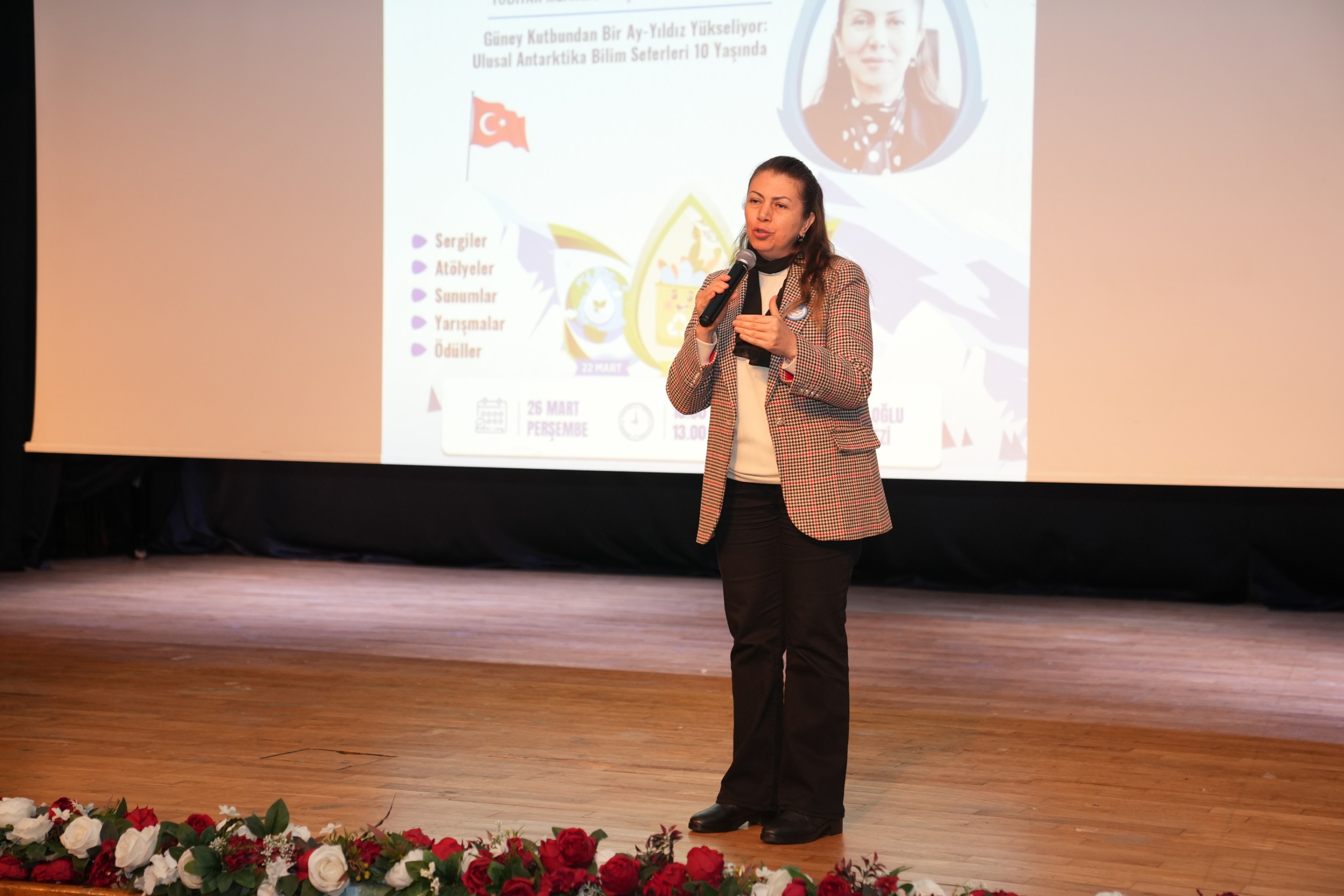 Mart ayının son haftasında eşzamanlı olarak kutlanan Dünya Su Günü, Sıfır Atık Günü ve Orman Haftası münasebetiyle Üniversitemiz Sıfır Atık Yönetimi Koordinatörlüğü tarafından “Mavi-Yeşil Dönüşüm Festivali” adı altında zengin içerikli bir etkinlik programı düzenlendi. Atölye çalışmaları, sergiler, fidan dağıtımı, sunumlar ve çeşitli yarışmaların yer aldığı program çerçevesinde Cumhurbaşkanlığı Yerel Yönetim ve Afet Politikaları Kurulu Üyesi-TÜBİTAK Marmara Araştırma Merkezi Başkanı Prof. Dr. Burcu Özsoy “Güney Kutbundan Bir Ay-Yıldız Yükseliyor: Ulusal Antarktika Bilim Seferleri 10 Yaşında” konulu bir sunum yaptı.