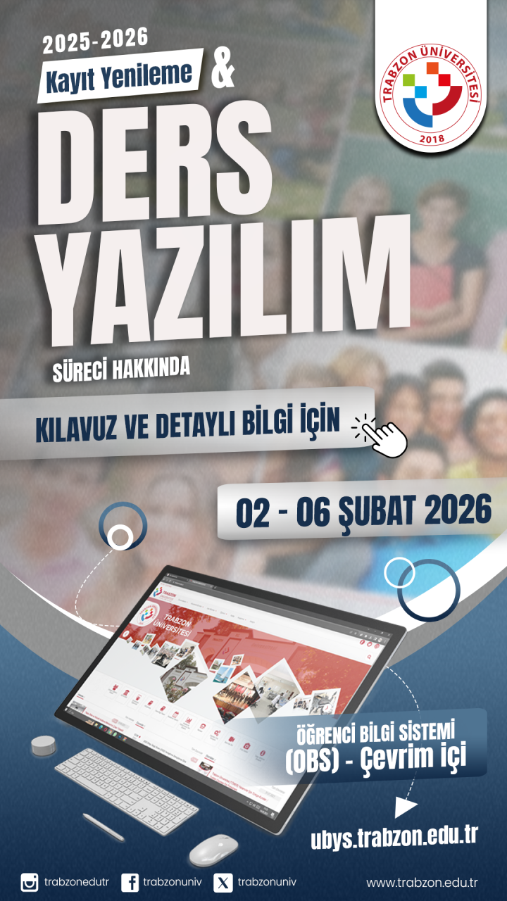 2025-2026 Eğitim-Öğretim Yılı Bahar Dönemi ders yazılımları için Öğrenci Bilgi Sistemi 02 Şubat 2026 Pazartesi saat 09.00'da açılacak olup, 06 Şubat 2026  Cuma saat 23.59'da kapatılacaktır.