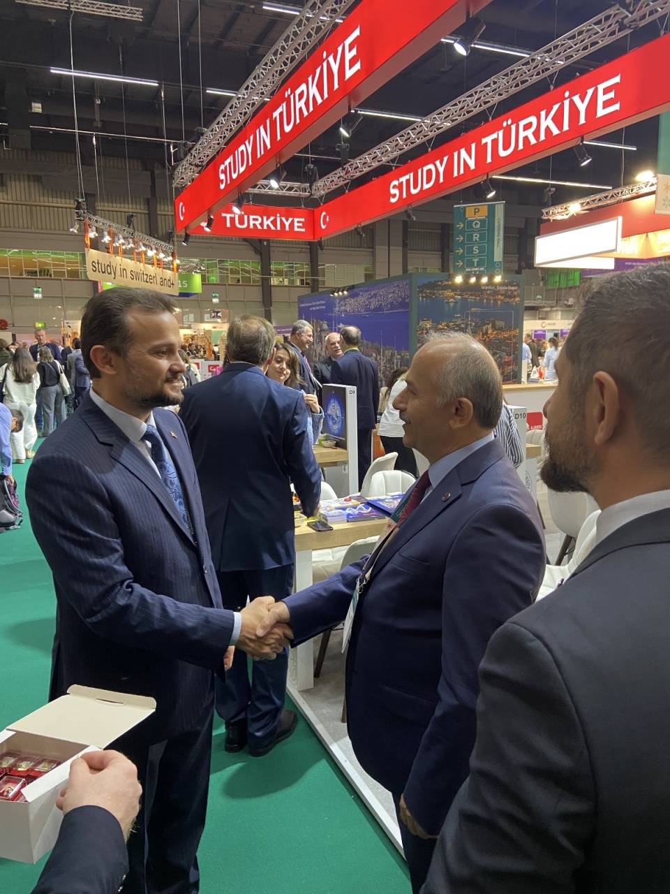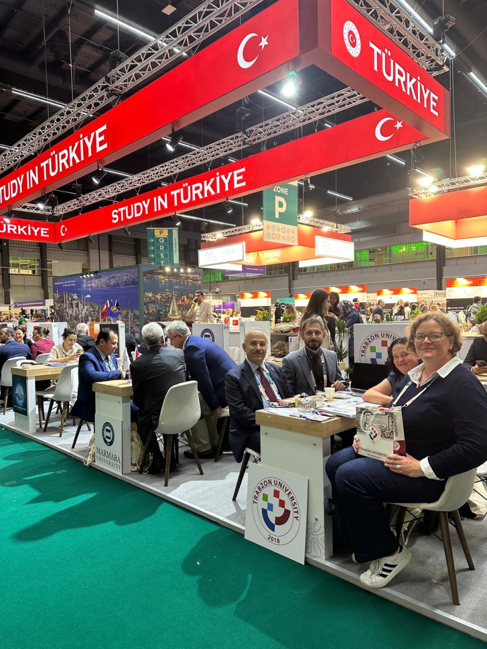Fuar kapsamında Ulusal Ajans tarafından düzenlenen ve 88 üniversite ile 4 kamu kurumuna tahsis edilen “Study in Türkiye” pavilyonu içerisinde yer alan Trabzon Üniversitesi standında, üniversitemizi Rektör Prof. Dr. Emin Âşıkkutlu ile Dış İlişkiler Kurum Koordinatörü Prof. Dr. Faik Özgür Karataş temsil etti. Konferansın ilk gününde standımızı ziyaret eden Ulusal Ajans Başkanı İlker Astarcı heyetimize Türk Bayrağı rozeti takdim etti.