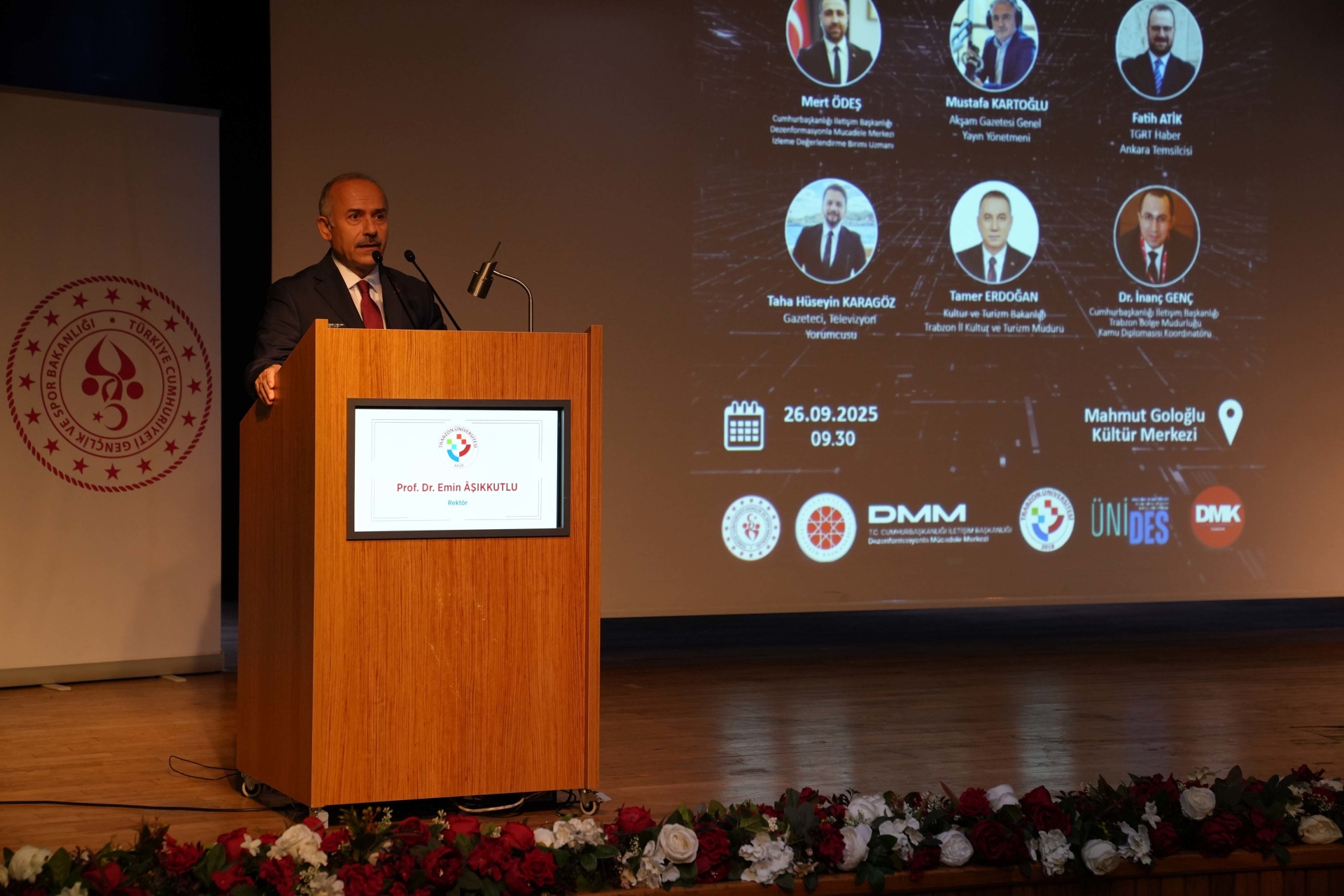Programın açılış konuşmasını yapan Rektörümüz Prof. Dr. Emin Âşıkkutlu, içinde bulunduğumuz çağda doğru bilgiye ulaşmanın, doğru biçimde paylaşmanın ve onu etik çerçevede topluma aktarmanın her zamankinden daha büyük önem taşıdığını söyleyerek, dezenformasyonun yayılma hızının artmasıyla iletişim teknolojilerinin sağladığı sınırsız imkânların yanında çok ciddi riskler taşıdığına işaret ederek “Bu konuda gazetecilerimize, medya mensuplarımıza, iletişimci akademisyenlerimize, öğrencilerimize; hülâsa toplum olarak hepimize büyük görevler düşüyor” dedi. Rektörümüz organizasyona katkı sunan tüm paydaşlara da teşekkür etti.