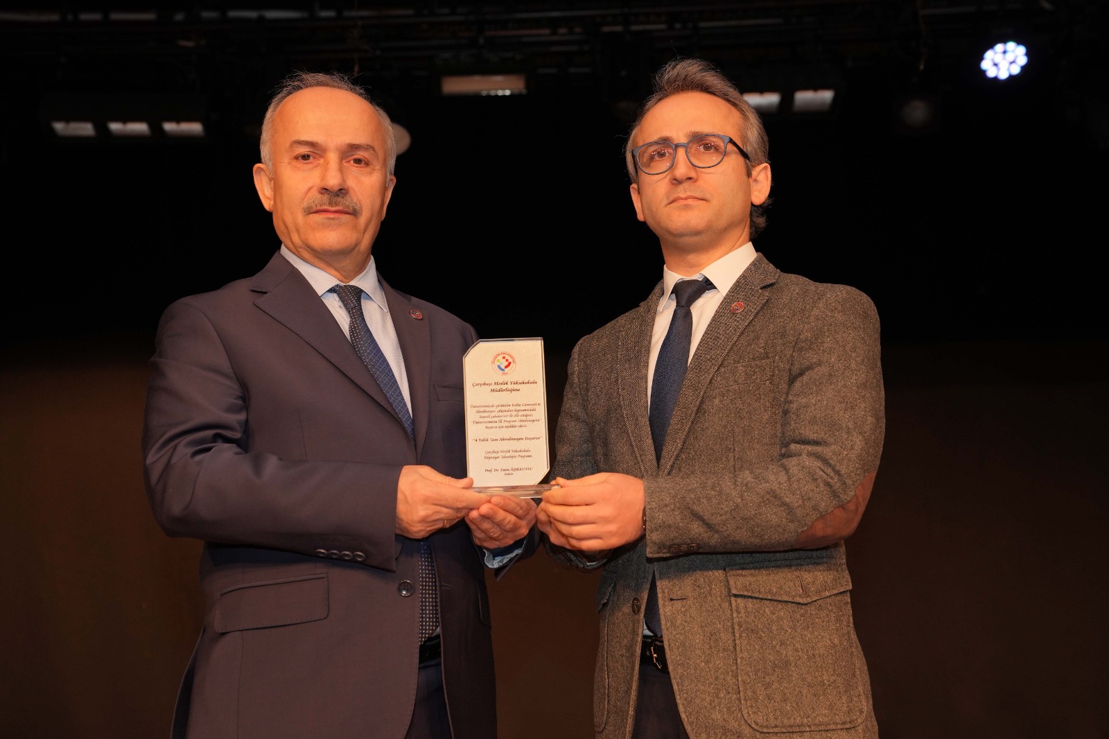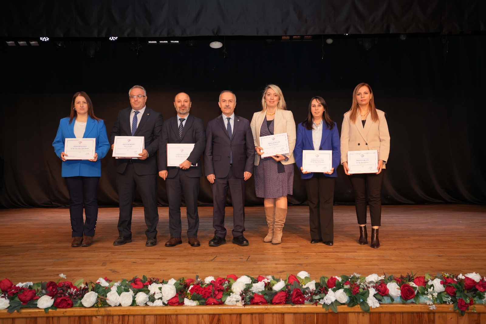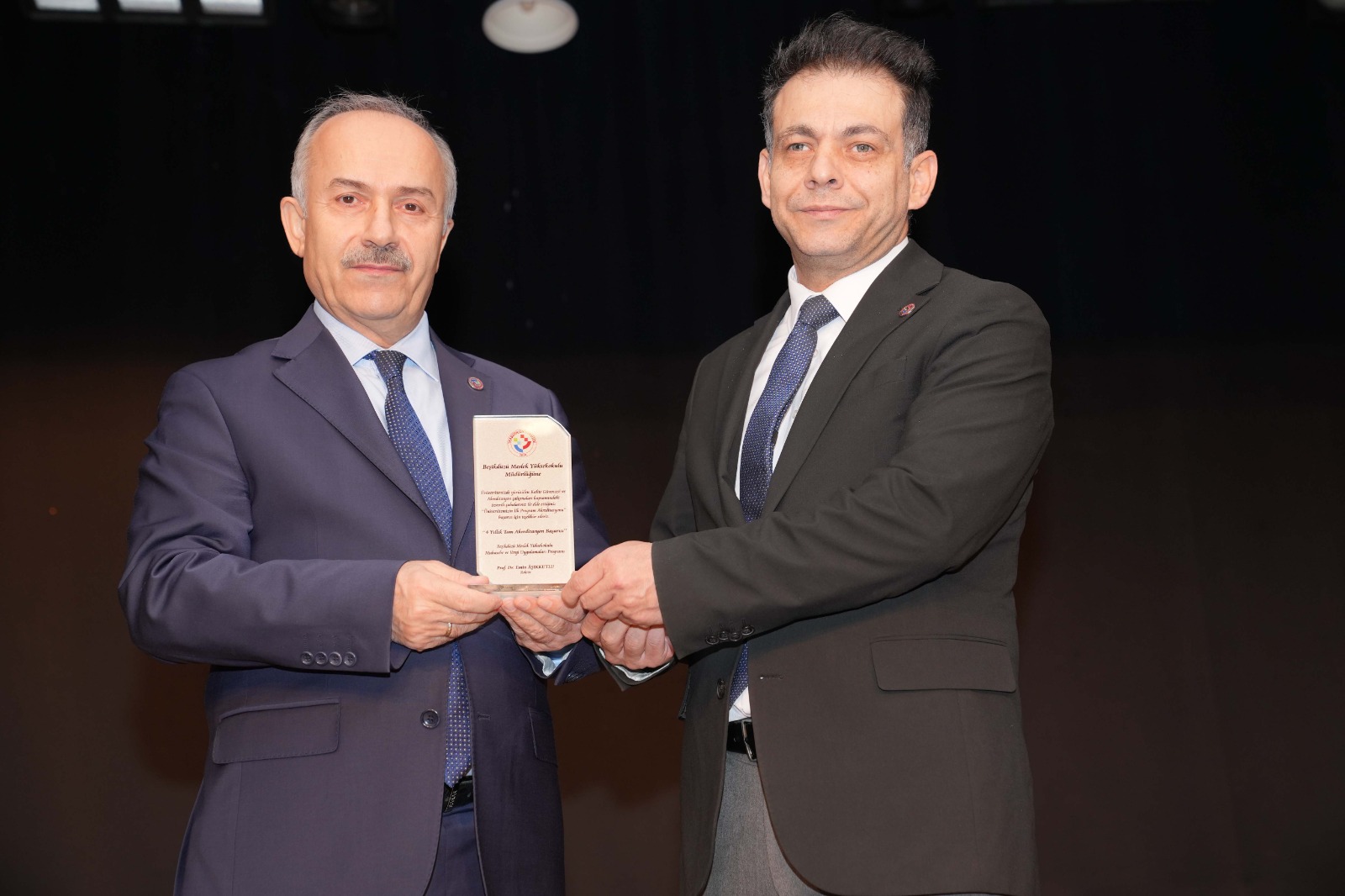 Daha sonra ilgili meslek yüksekokullarının müdürlerine, meslek yüksekokulu sekreterlerine, ilgili bölüm başkanlarına ve akredite olan programların öğretim elemanlarına plaket ve teşekkür belgesi takdim eden Rektörümüz, Prof. Dr. Atilla Çimer ve ekibine de süreç boyunca sergiledikleri özverili çalışmalarından dolayı teşekkürlerini iletti.