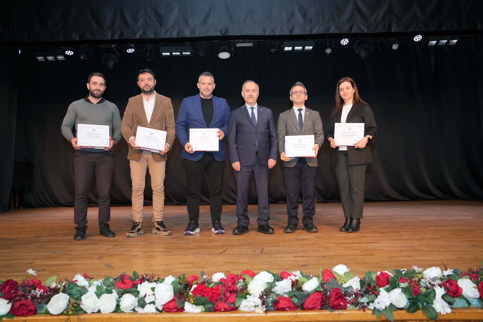 Rektör Yardımcımız Prof. Dr. Atilla Çimer’in sunumunu takiben 2025 yılı sonunda Beşikdüzü Meslek Yüksekokulu Muhasebe ve Vergi Uygulamaları programına, Çarşıbaşı Meslek Yüksekokulu Bilgisayar Teknolojisi programına ve Tonya Meslek Yüksekokulu Yaşlı Bakımı programına, MEDEK tarafından dört yıllık tam akreditasyon belgesi verilmesi dolayısıyla ödül töreni düzenlendi. Ödül töreninde, performans değerlendirme süreçlerini izlemek için düzenlenen toplantının önemine işaret eden Rektörümüz Prof. Dr. Emin Âşıkkutlu ise “Toplantımızın hayırlı olmasını temenni ediyor, Üniversitemizin akreditasyon süreçlerine ilk öncülük yapan üç meslek yüksekokulumuzu tebrik ediyorum. Diğer birimlerimize de örnek olmalarını temenni ediyorum. Yapacağımız işler, yaptıklarımızdan çok daha fazla... Bir an önce bu sürece bütün gücümüzle, samimiyetimizle sarılarak destek vermemiz gerekiyor” dedi. YÖKAK’ın açık yönergeleriyle 2027 yılında kurumsal akreditasyon süreçlerinin tamamlanması gerektiğini hatırlatan Rektörümüz, “Başlanmış yıl bitmiş demektir. Fazla zamanımız kalmadı. Bir an önce bu süreçlere adapte olup birimlerimizle gerekli çalışmalarımızı tamamlamamız gerekiyor. Bizim burada yaptığımız, birimlerin koordinasyonudur. Birimler de kendi içlerinde bu süreci sürdürmeli. Türkiye’de 208 üniversite bu sürece giriyor. Sınırlı sayıda akreditasyon dernekleri bulunması doğal olarak bir sıra oluşturacaktır. Akreditasyon sırasında beklemek istemiyoruz; bir taraftan irademizi ortaya koyar diğer taraftan da eksikliklerimizi giderirsek başarılı oluruz” şeklinde konuştu.